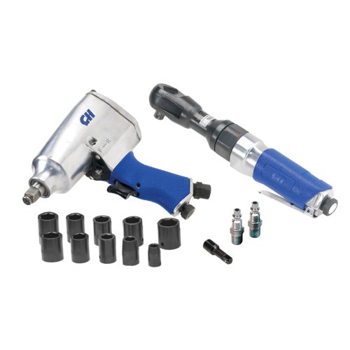 Auto maintenance is made easy with air tools, and this pack includes everything you need for repairs such as oil changes, tire rotations, tune-ups and radiator work. Set includes impact wrench, air ratchet and a variety of sockets, adapters and plugs for use. Impact wrench features 250-Feet lbs. of torque, and air ratchet is rated to 50-Feet lbs. of torque. Grab and go style blow-molded case is easy to carry and store. This is the ideal companion to a Campbell Hausfeld air compressor for automotive and shop use.